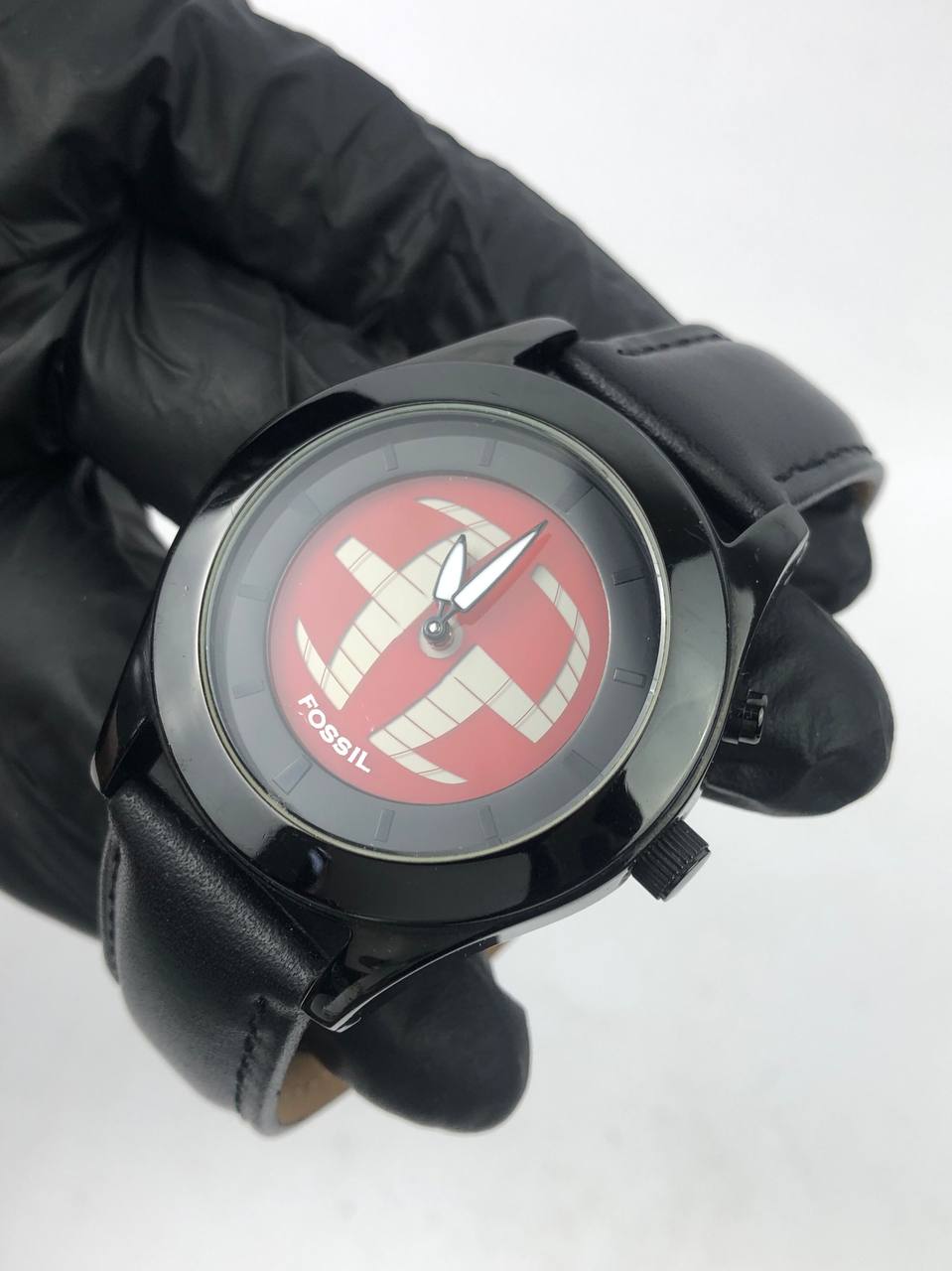 AUTHENTIC FOSSIL ANADIGI RED ART DIAL BLACK STRAP