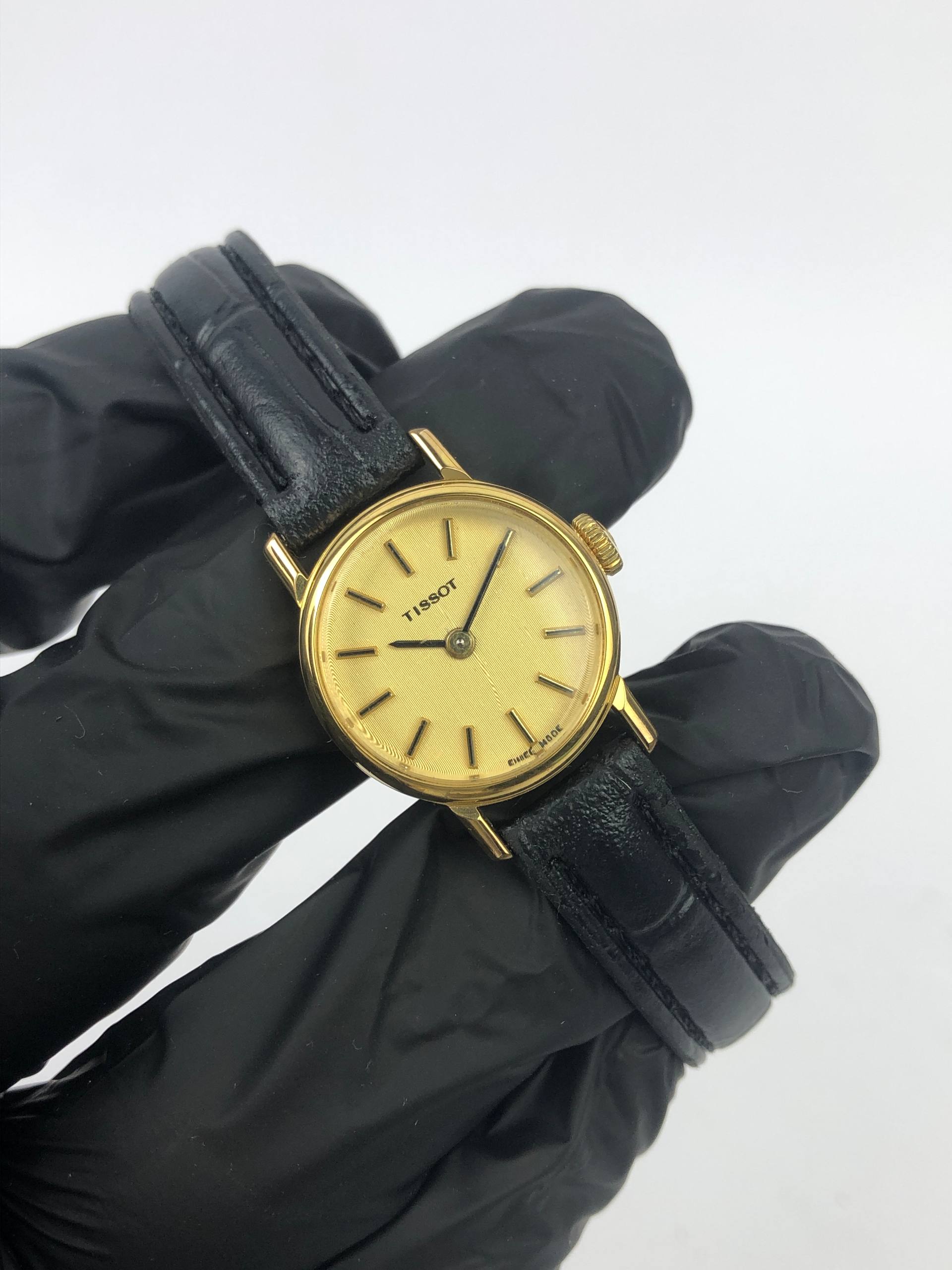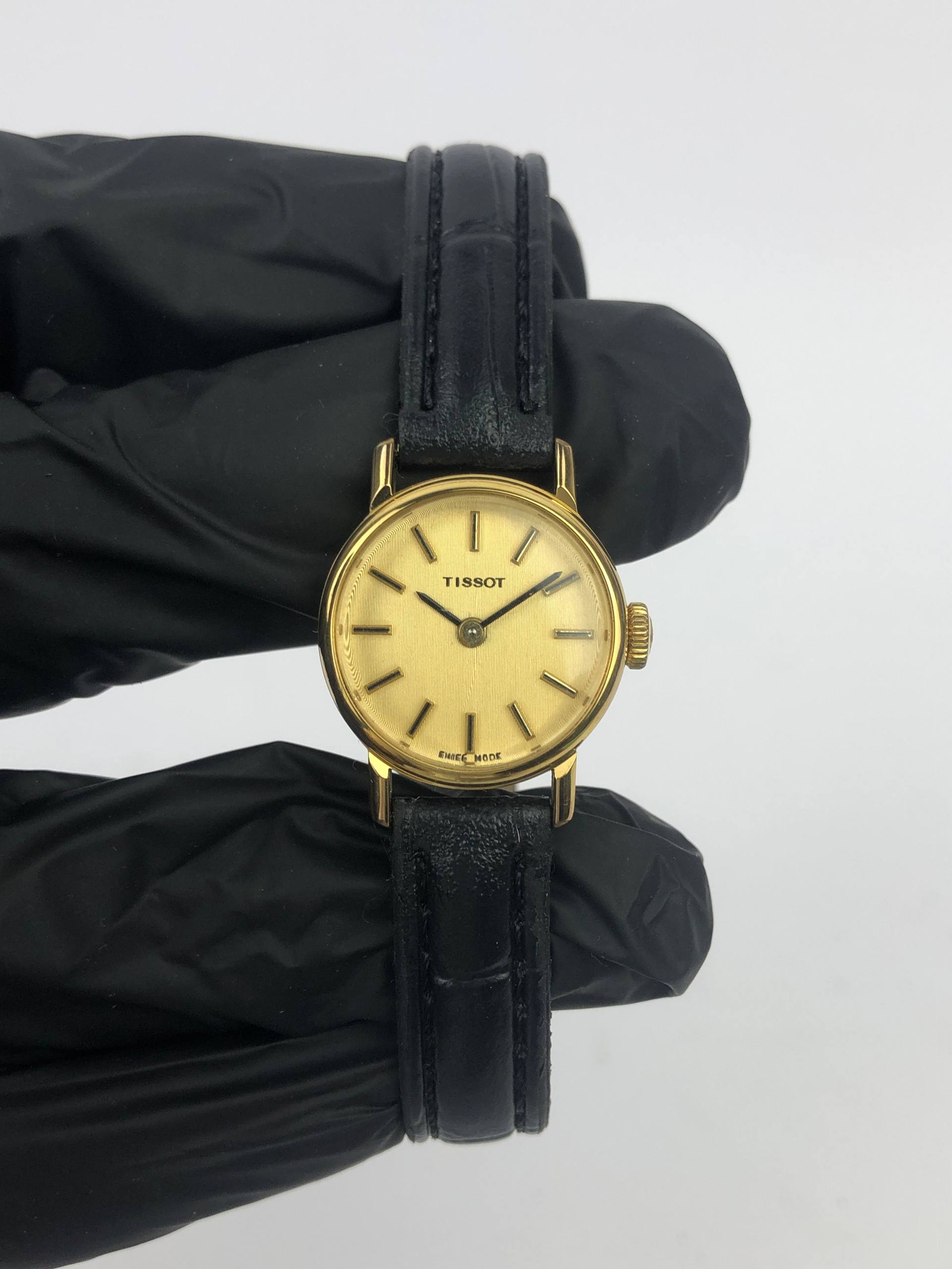 TISSOT STYLIST SWISS DRESS WATCH ROUND GOLD CHAMPAGNE DIAL LEATHER STRAP