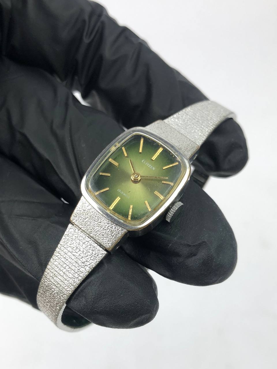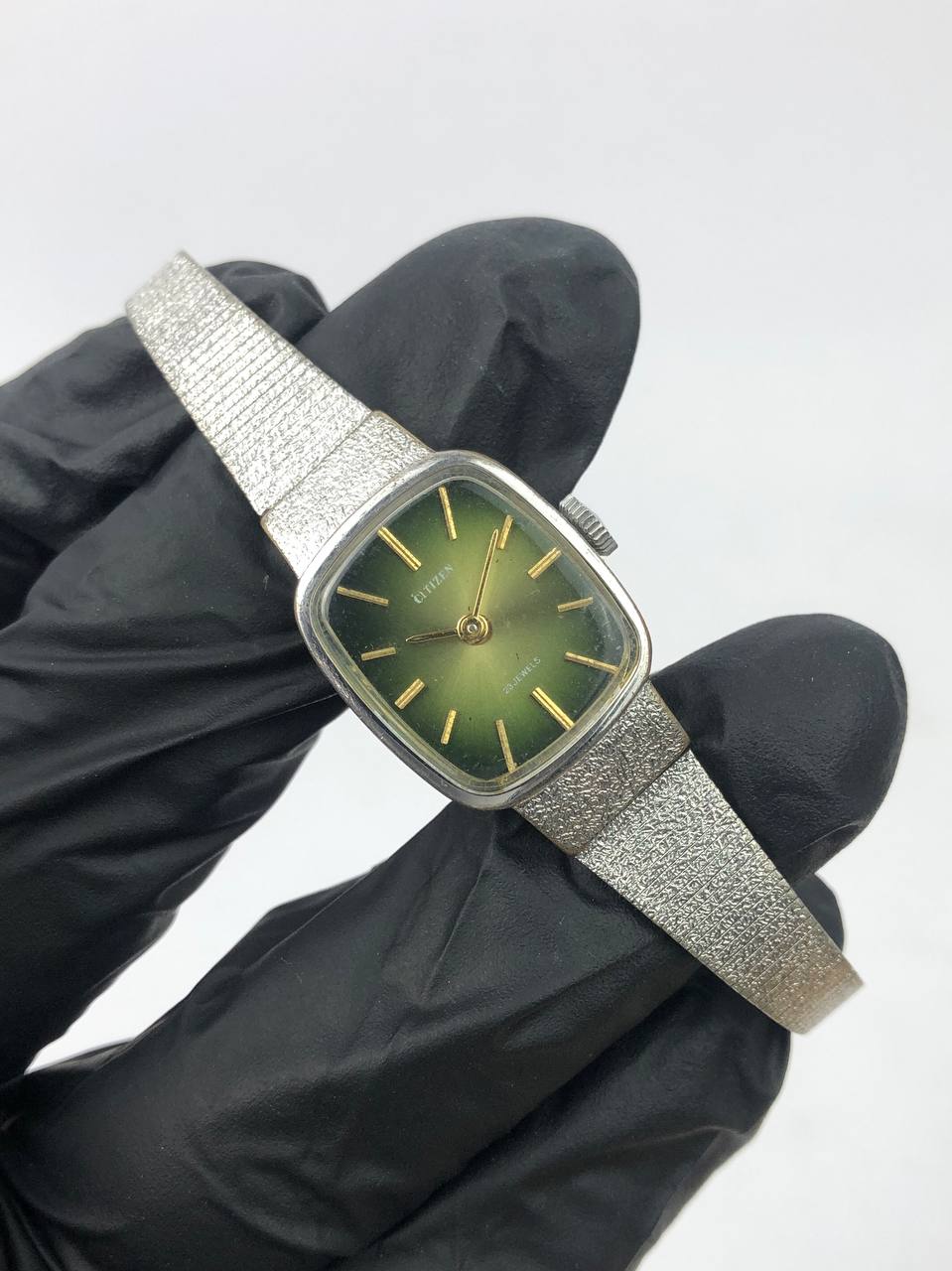 CITIZEN VINTAGE TONNEAU SILVER GREEN SUNBURST BRACELET