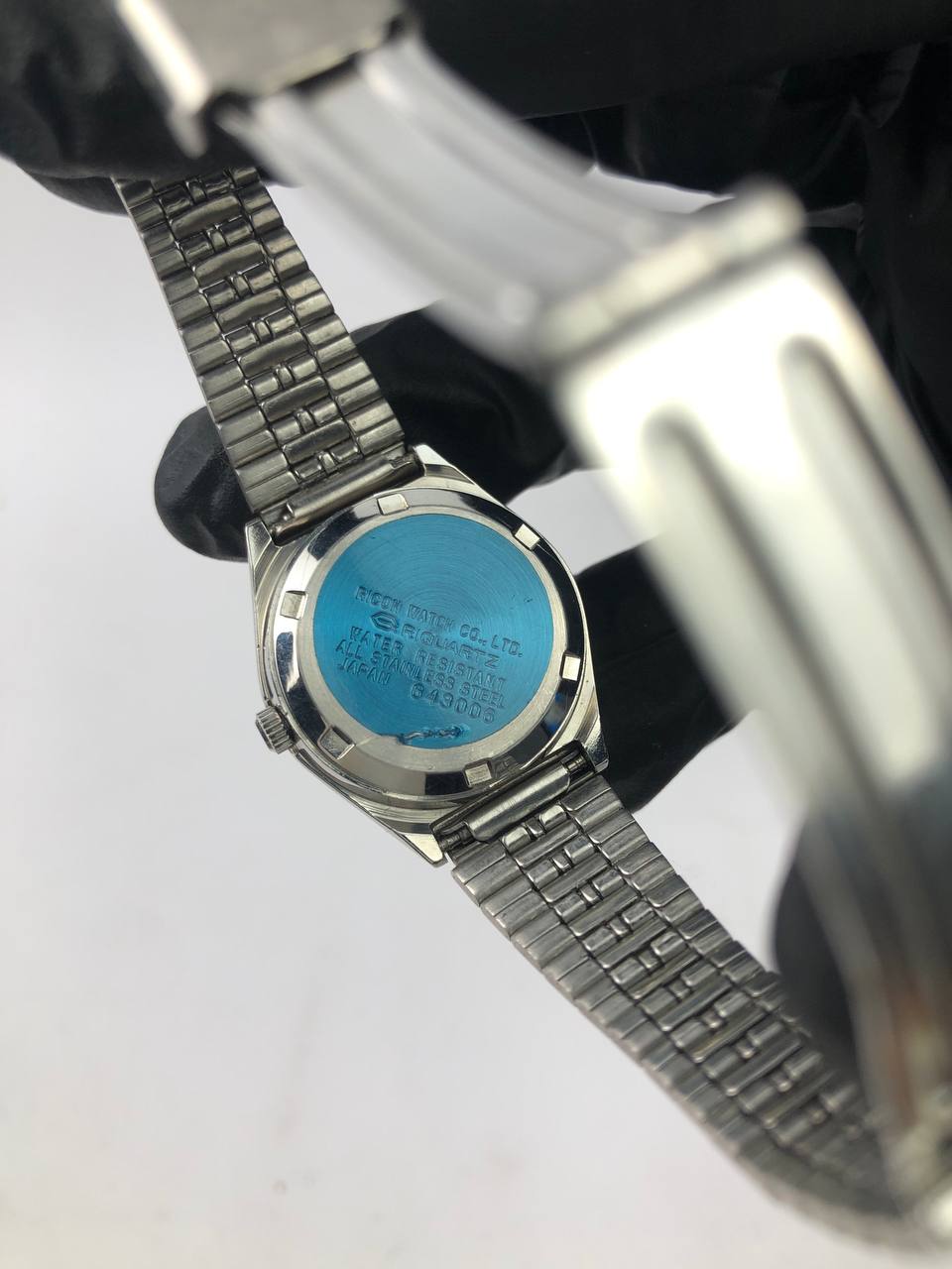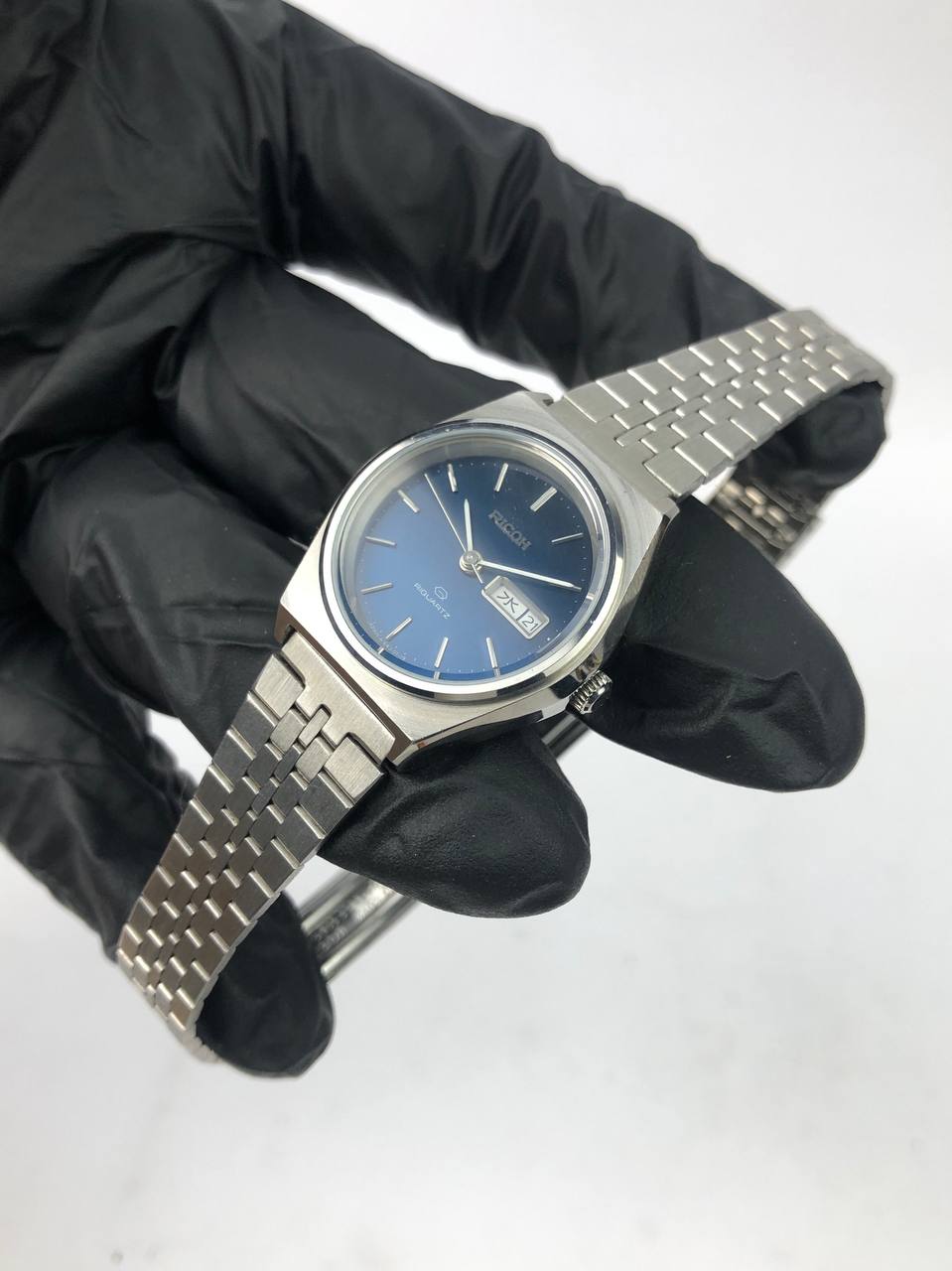 RICOH RIQUARTZ VINTAGE DRESS WATCH ROUND CASE SILVER BLUE DIAL BRACELET