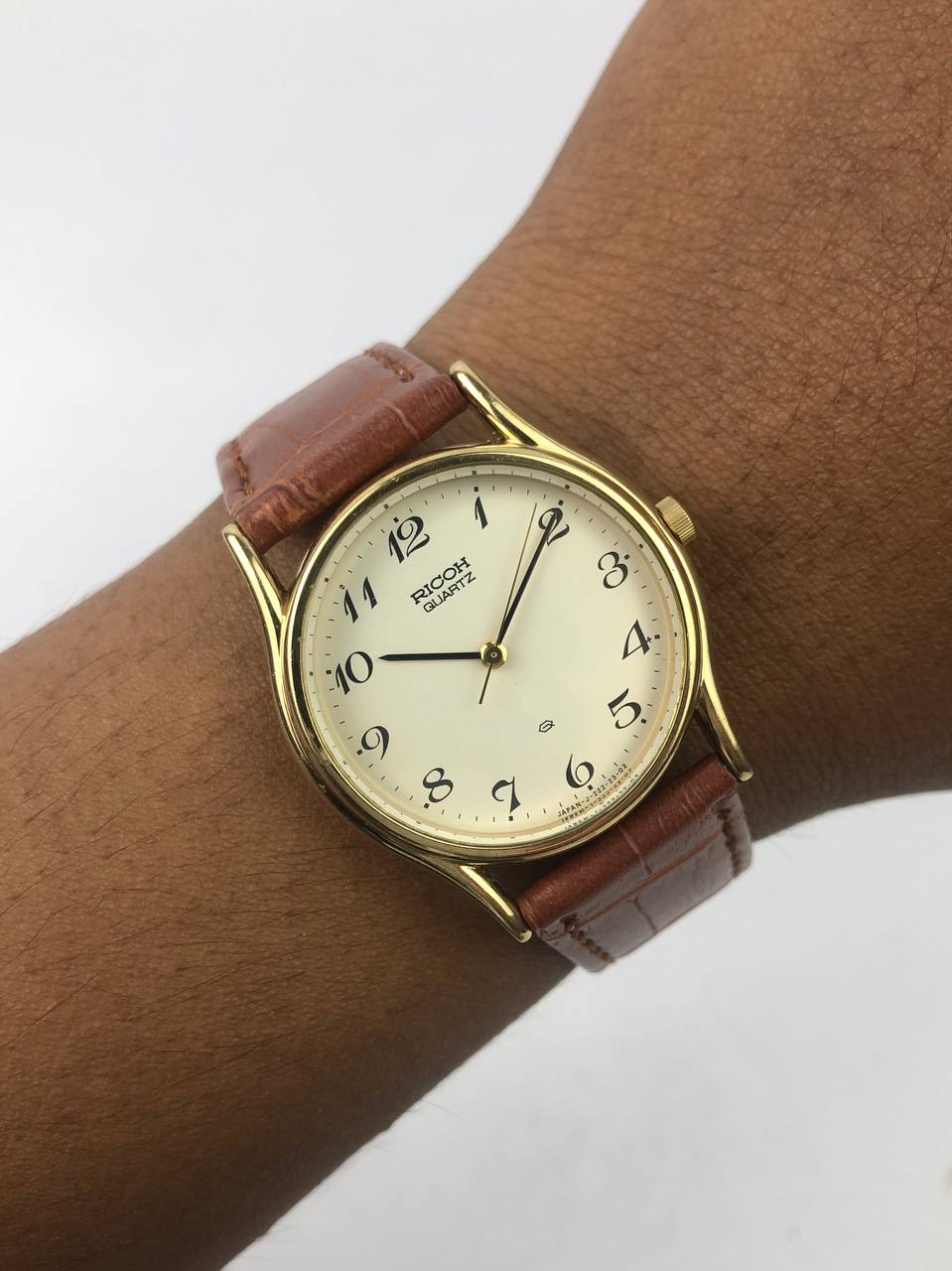RICOH ROUND CLASSIC CASE CREAM ARABIC DIAL BROWN STRAP