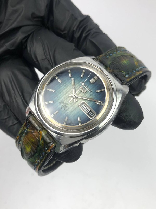 VINTAGE SEIKO 5ACTUS GREEN GRADASI DIAL CUTTING GLASS CRYSTAL