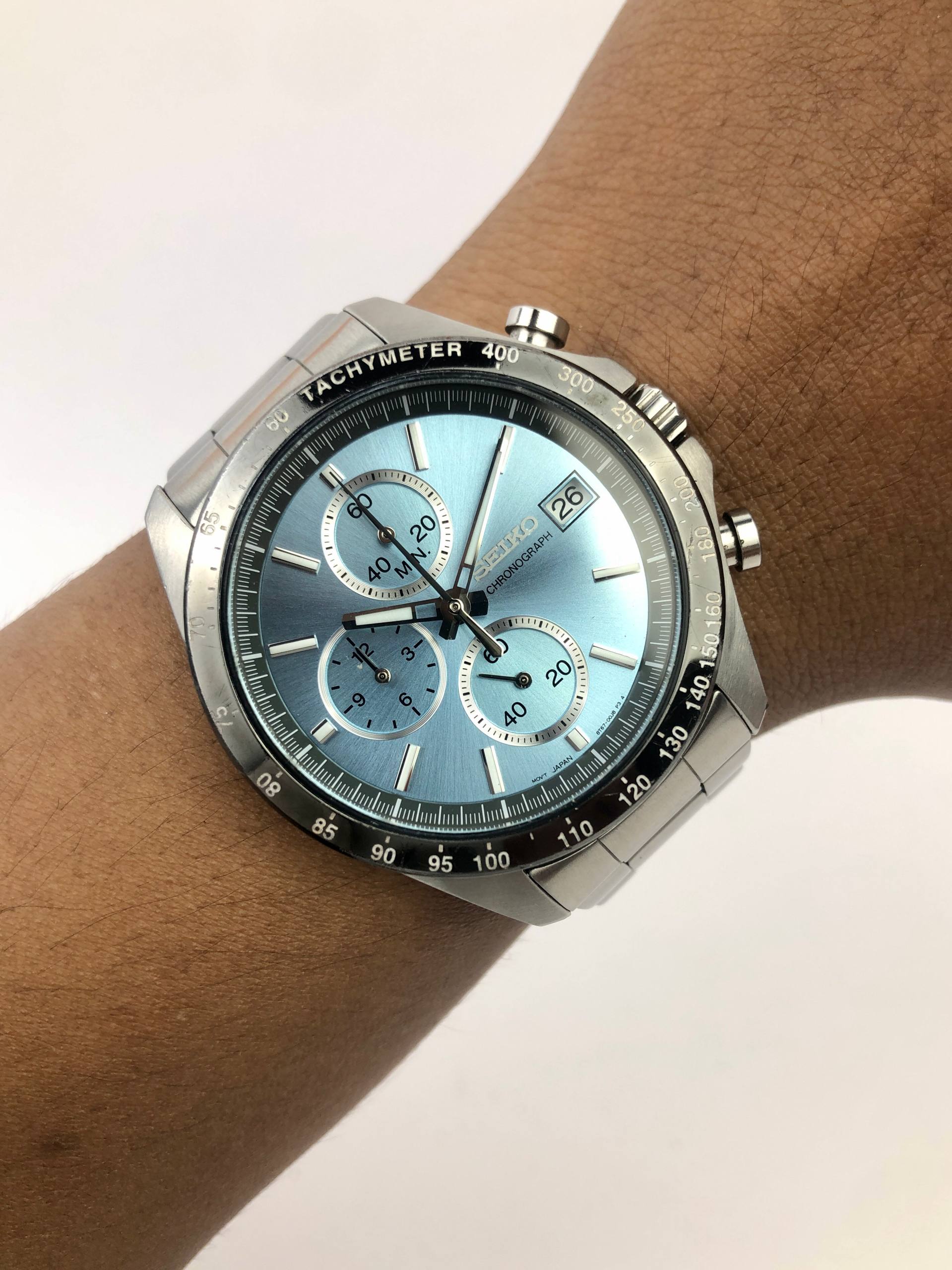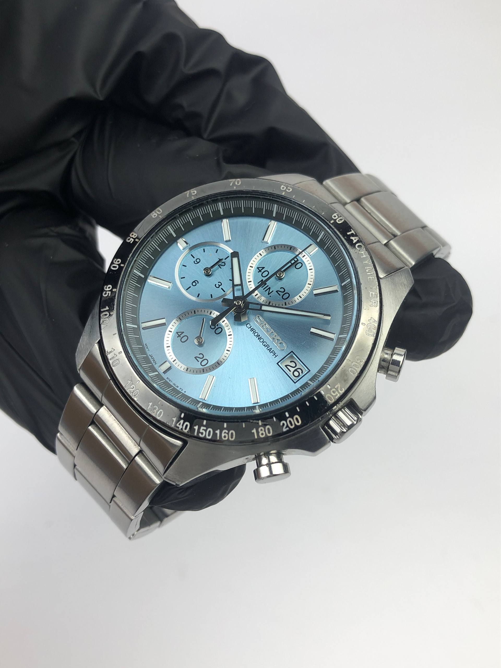 SEIKO CHRONOGRAPH BLUE SEA DIAL SWIPE SECOND HAND