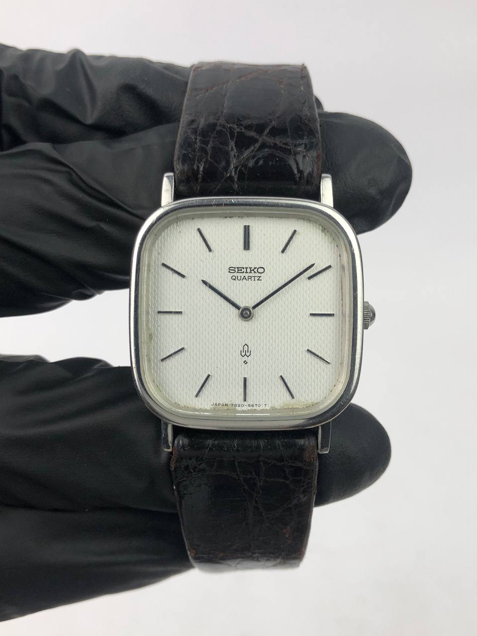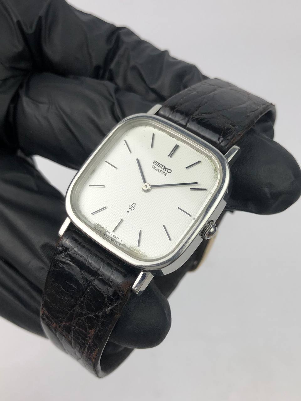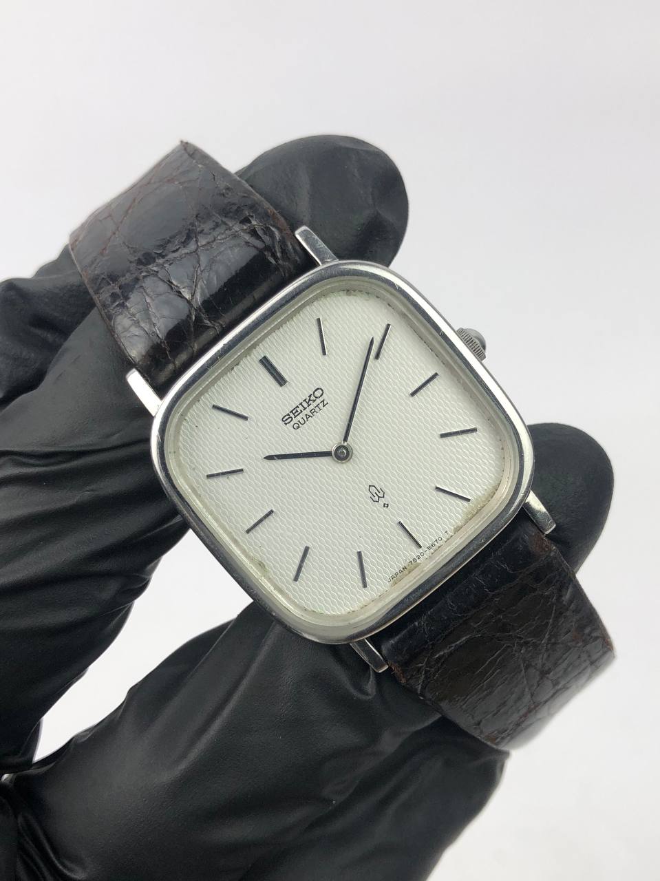 SEIKO QUARTZ CUSHION STEEL CASE WAFFLE DIAL
